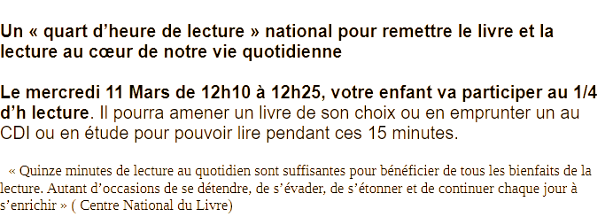 Quart d'heure lecture