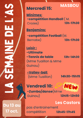 Par FLORA TUAILLON, publié le lundi 8 septembre 2025 07:53 - Mis à jour le lundi 13 octobre 2025 09:45Ce que vous propose l'association sportive cette semaine. -