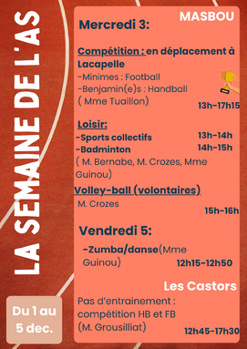 Par FLORA TUAILLON, publié le lundi 8 septembre 2025 07:53 - Mis à jour le jeudi 4 décembre 2025 16:10Ce que vous propose l'association sportive cette semaine. -